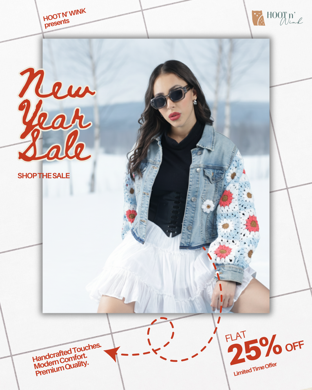 This edit flips the script on everyday denim — by threading in softness, memory, and unexpected texture. Hand-crocheted floral and granny square sleeves inject a crafted soul into the structured coolness of classic jackets. Delicate hand embroidery runs along the seams and collar like whispered rebellion.